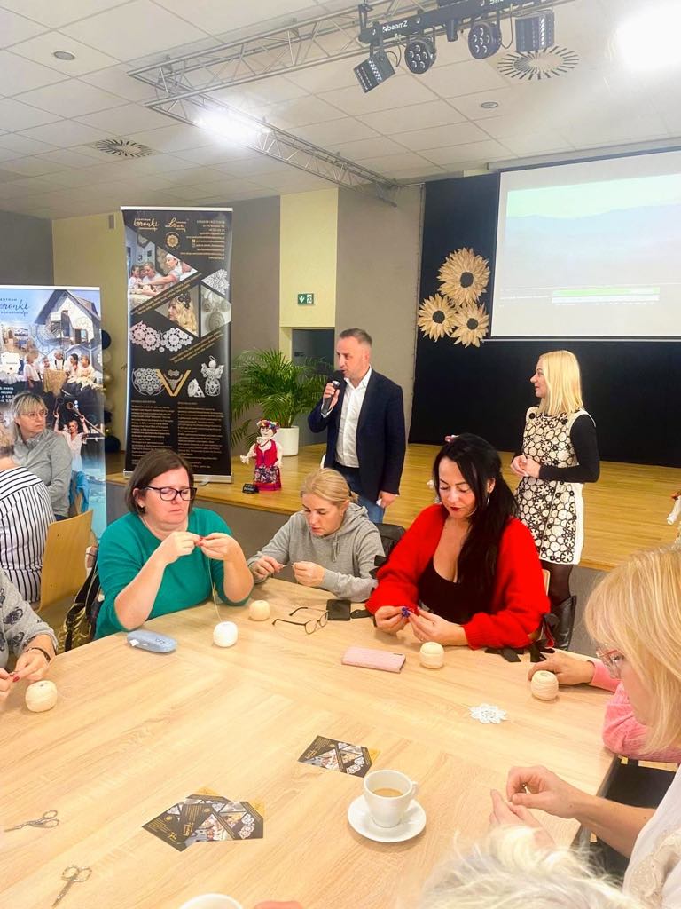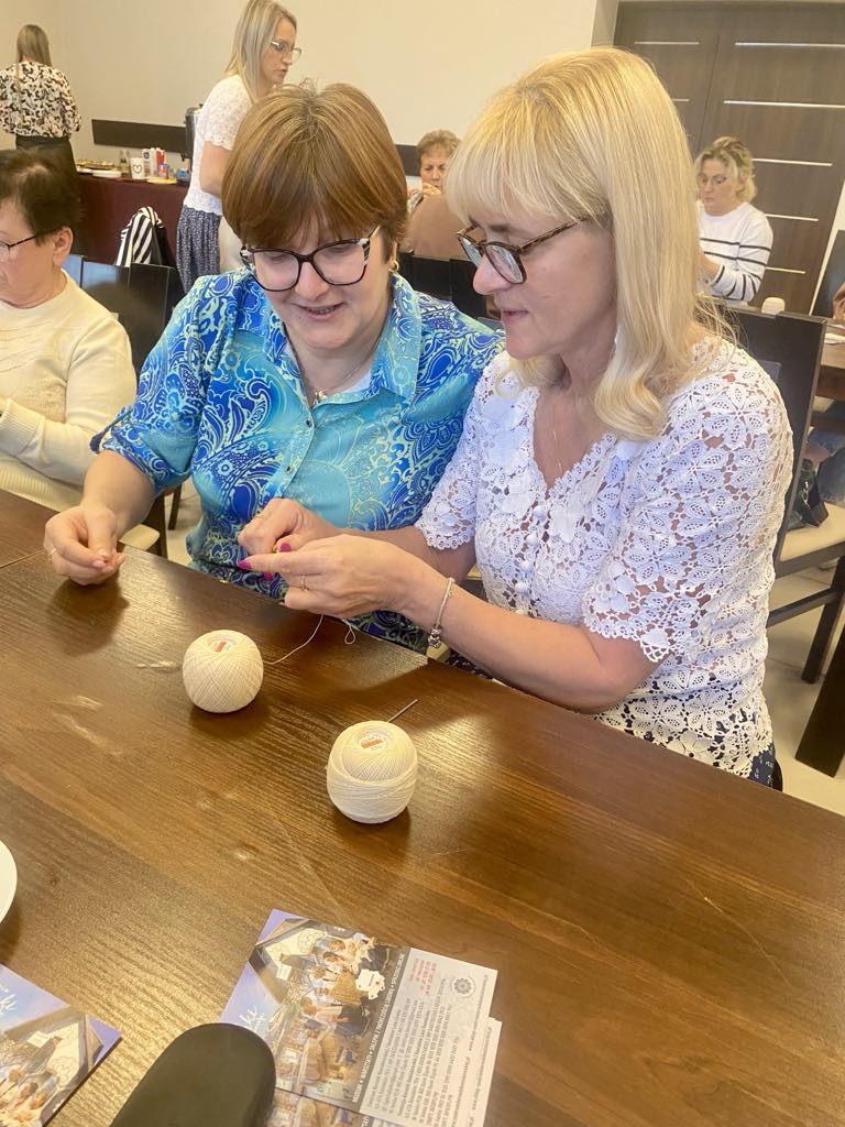 Wyrazy wdzięczności kierujemy również do wszystkich Pań, które tak licznie wzięły udział w warsztatach — Wasze zaangażowanie, kreatywność i otwartość sprawiły, że atmosfera była naprawdę wyjątkowa. Mamy nadzieję, że zdobyte umiejętności oraz inspiracje pozostaną z Wami na długo i zachęcą do dalszego odkrywania koronczarskich technik.