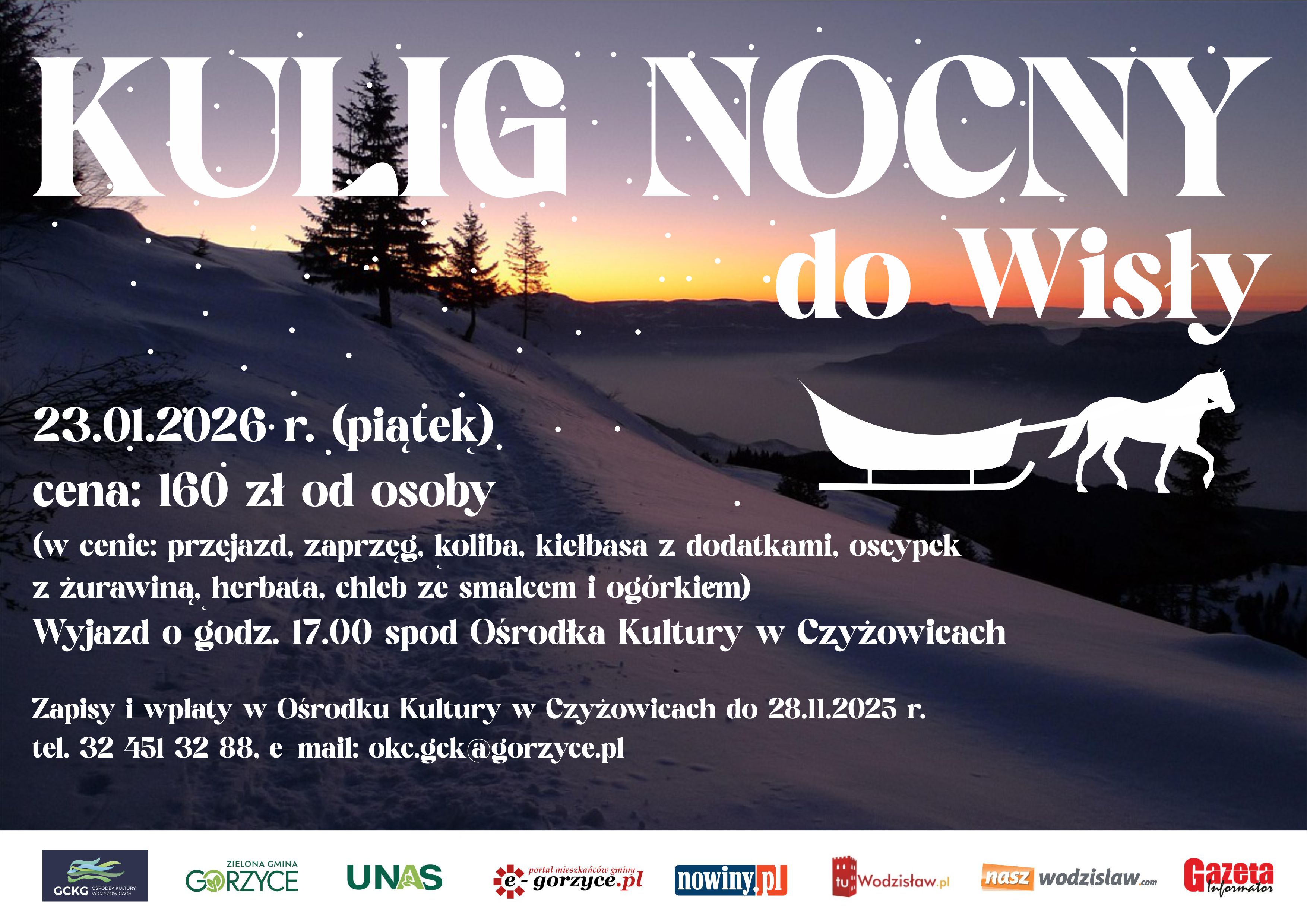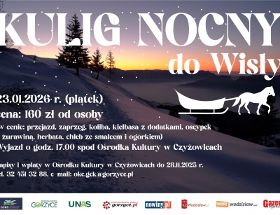 Wyjazd: 23.01.2026 r., godzina 17:00, spod Ośrodka Kultury w Czyżowicach
