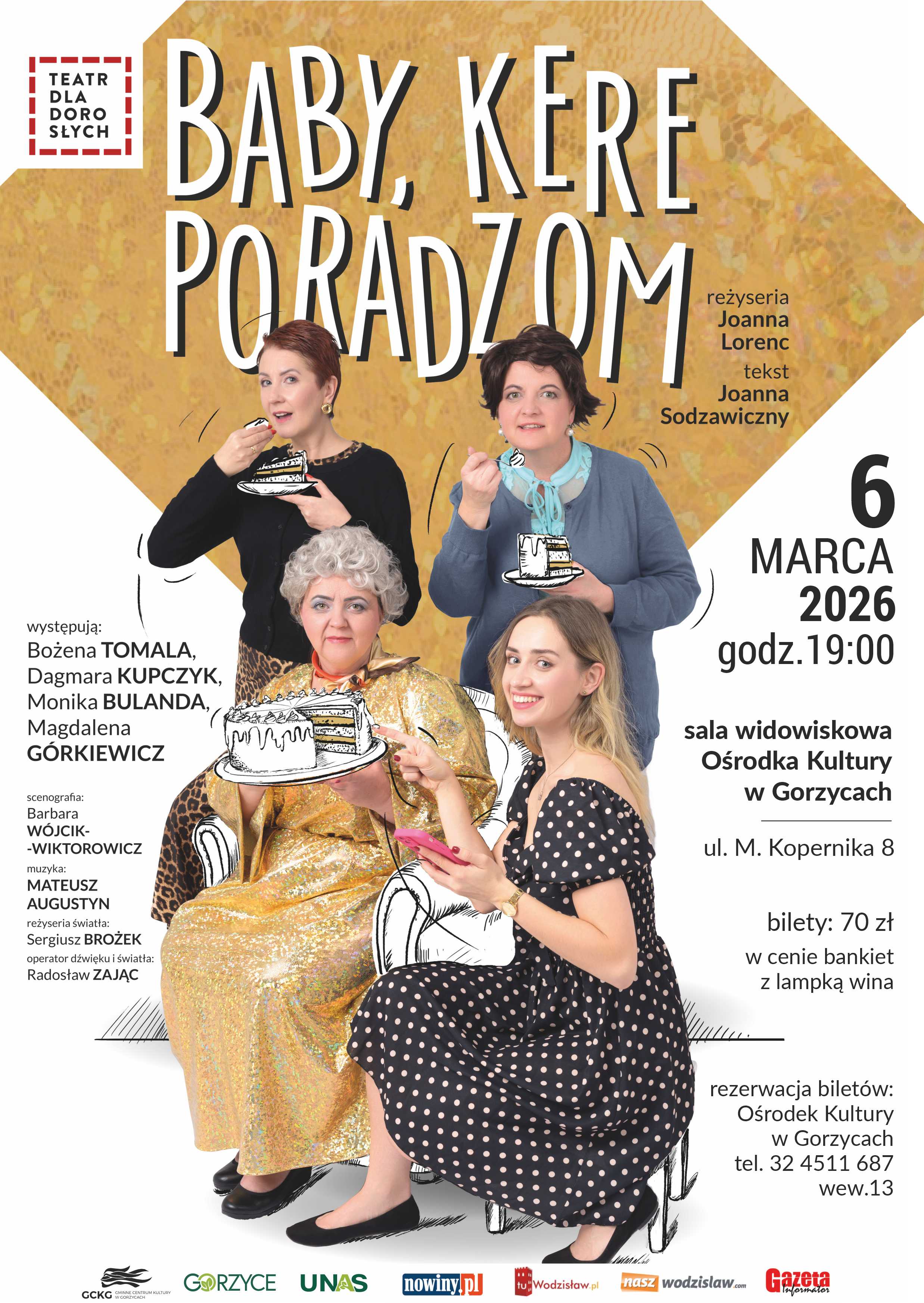 Gminne Centrum Kultury w Gorzycach oraz Teatr dla Dorosłych z Bierunia zapraszają na spektakl pt. "BABY, KERE PORADZOM!”.