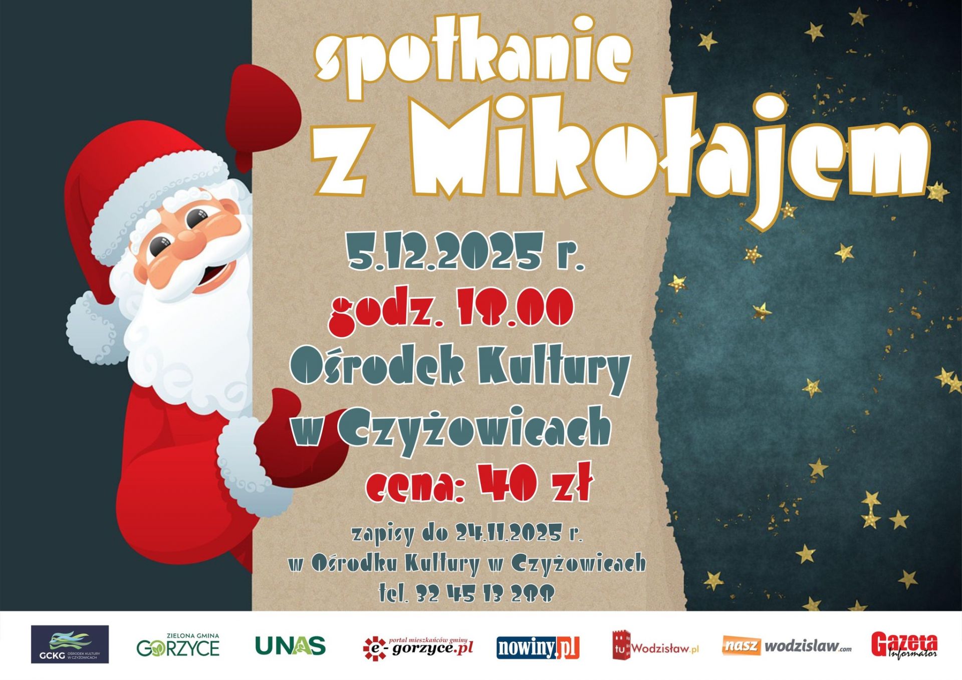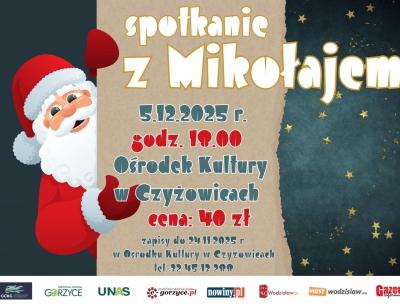 Gminne Centrum Kultury w Gorzycach serdecznie zaprasza wszystkie dzieci na spotkanie ze Św. Mikołajem, które odbędzie się w Ośrodku Kultury w Czyżowicach.