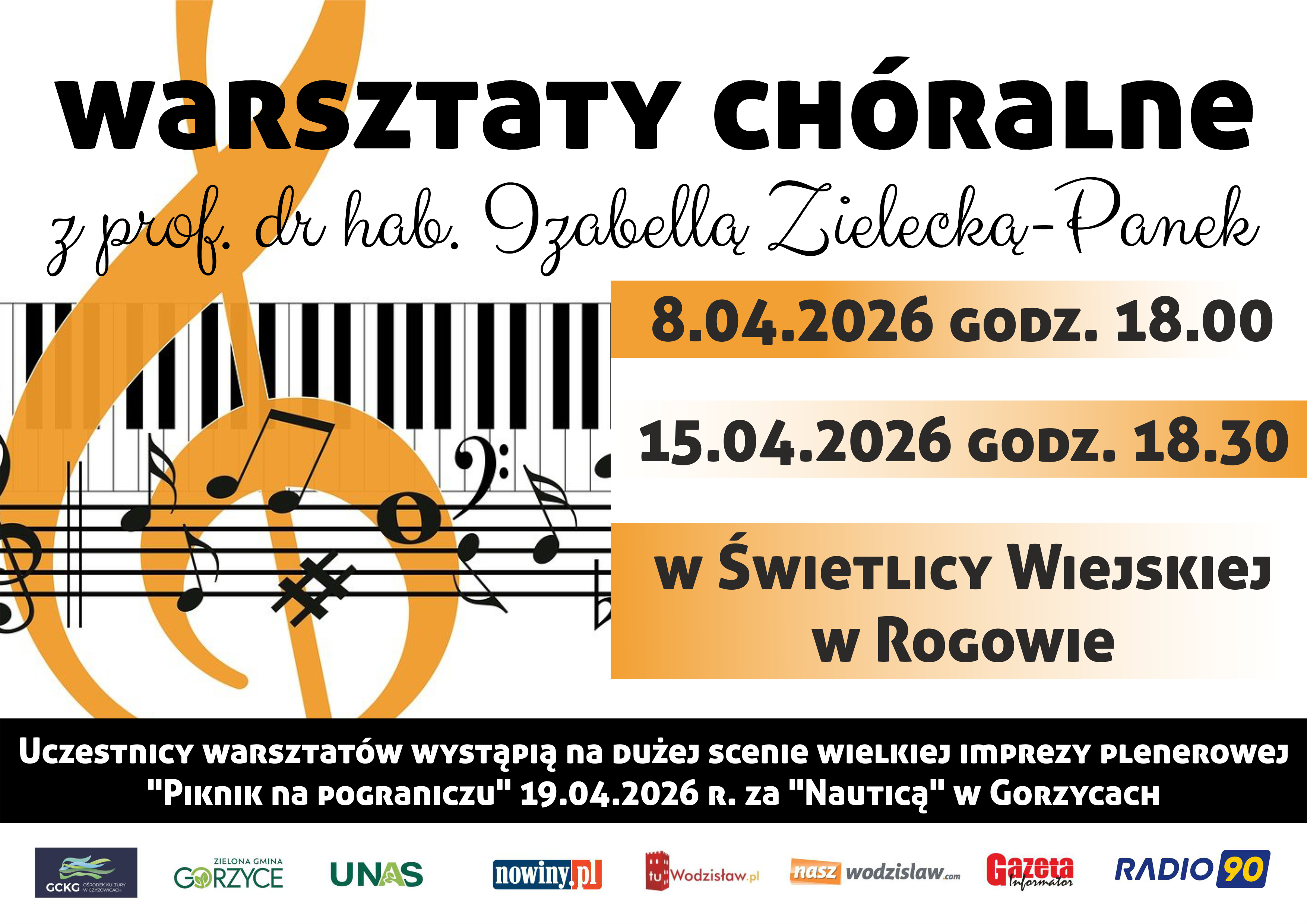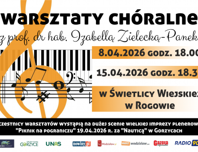 Uczestnicy warsztatów wystąpią na dużej scenie podczas wielkiej imprezy plenerowej " PIKNIK NA POGRANICZU" 19 kwietnia 2026 r. za "NAUTICĄ" w Gorzycach.