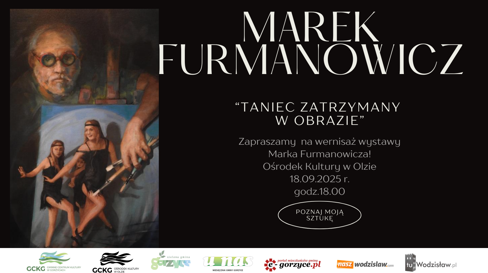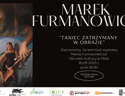 Serdecznie zapraszamy w dniu 18.09.2025 r. o godzinie 18.00 do Ośrodka Kultury w Olzie na wernisaż wystawy Marka Furmanowicza pt."Taniec zatrzymany w obrazie".