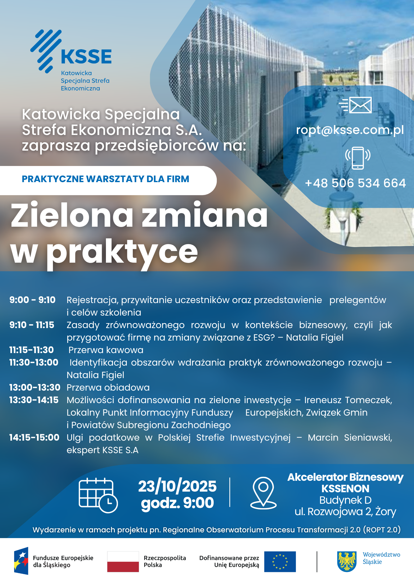 Zapraszamy na bezpłatne warsztaty, które pomogą przygotować Twoje przedsiębiorstwo do nadchodzących zmian, zrozumieć korzyści płynące z zielonych inwestycji oraz poznać dostępne źródła