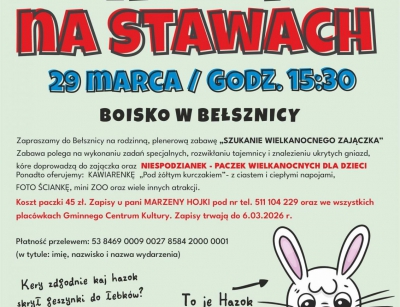 Świetlica Wiejska w Bełsznicy, Sołtys i Rada Sołecka Bełsznicy oraz Koło Gospodyń Wiejskich w Bełsznicy zapraszają na kolejną edycję uwielbianej przez dzieci imprezy HAZOK na Stawach! - 29 marca 2026 r., godzina 15:30, Boisko w Bełsznicy