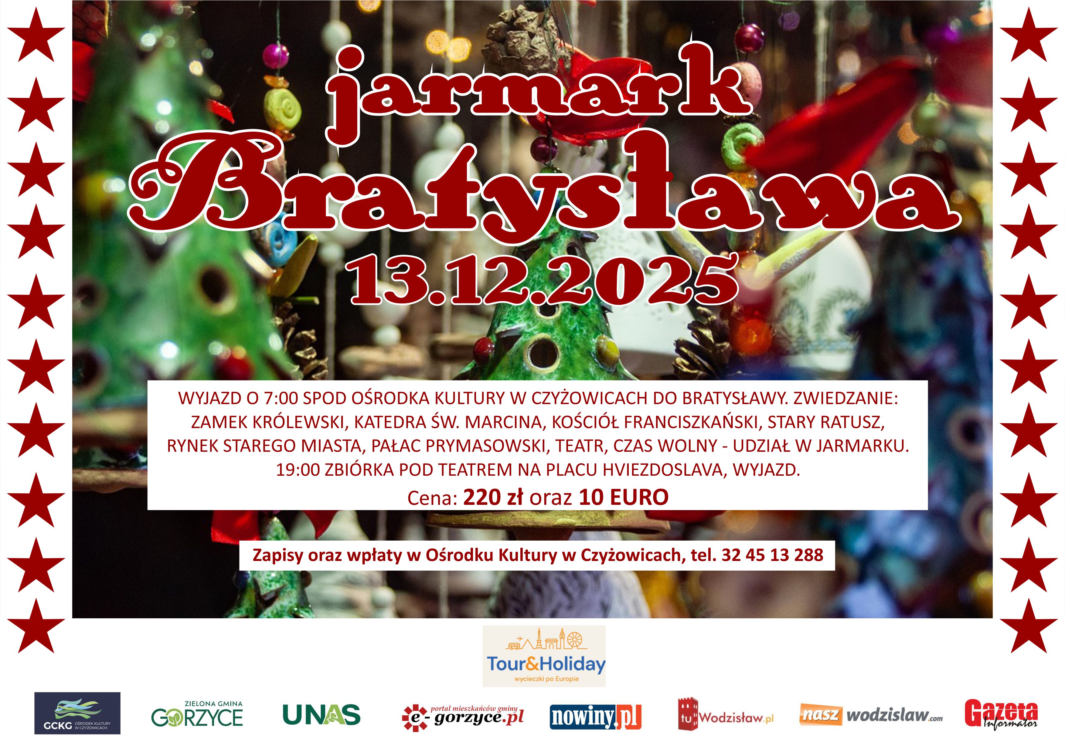 Wyjazd o 7:00 spod Ośrodka Kultury w Czyżowicach do Bratysławy.