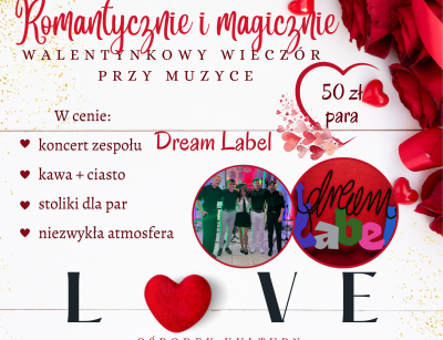 Gwiazdą wieczoru będzie zespół Dream Label – młodzi, energiczni rozgrzeją nasze serca przebojami o miłości!