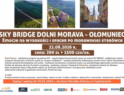 Sky Bridge Dolni Morava - Ołomuniec - emocje na wysokości i spacer po morawskiej starówce - 22.08.2026 r., cena: 290 zł + 1500 CZK/os.