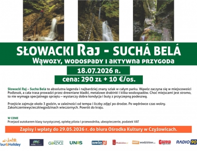 Słowacki Raj - Suchá Belá - 18.07.2026 r., cena: 290 zł + 10 €/os.